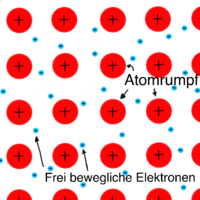 Das Elektronengasmodell beschreibt Metalle als eine Anordnung von positiv geladenen Atomkernen mit einem „Gas“ von frei beweglichen Valenzelektronen. Diese (Valenz-)Elektronen sind nicht an ein bestimmtes Atom gebunden und können sich stattdessen frei durch die gesamte Metallstruktur bewegen.